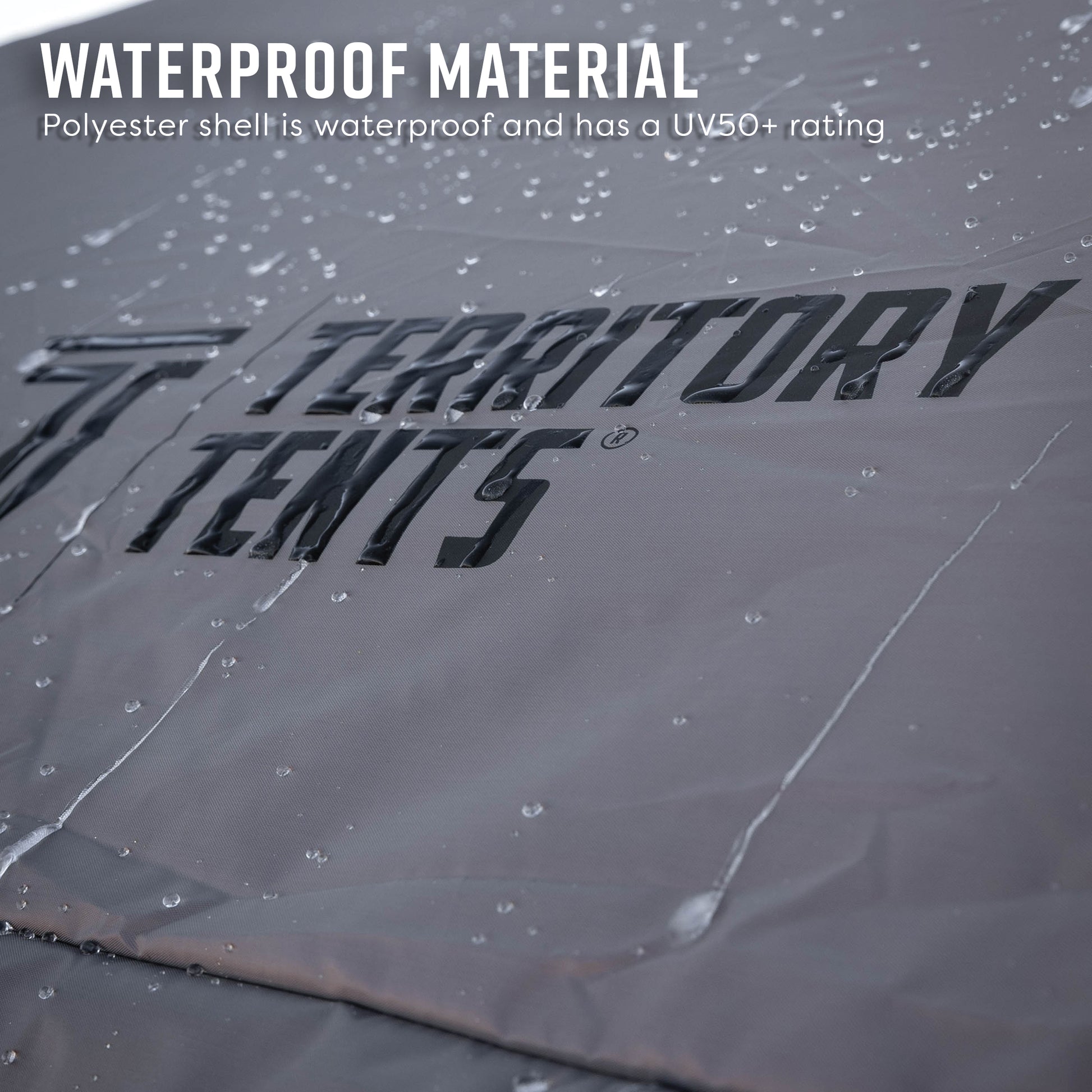 The polyester shell and roof material is waterproof and has a UV50+ rating to protect you from the sun and rain.