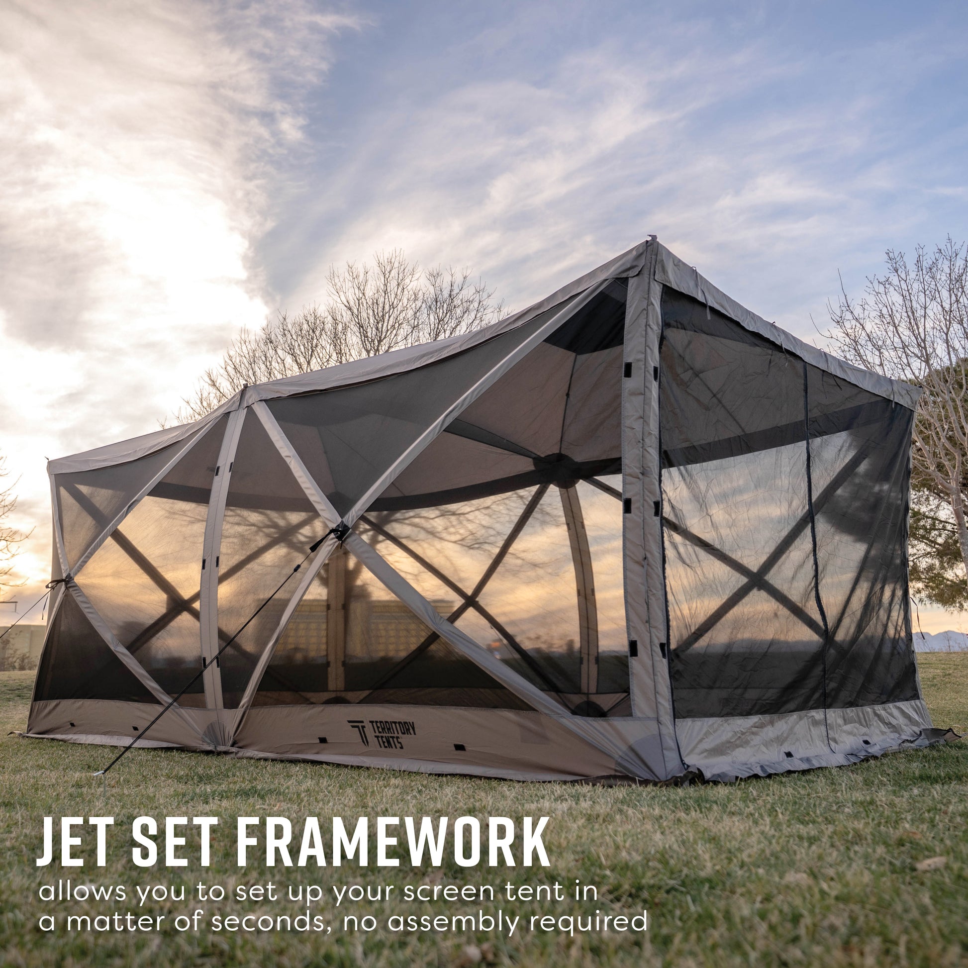 The mesh wall panels provide air flow but keeps the bugs out for enjoyable outdoor relaxing.