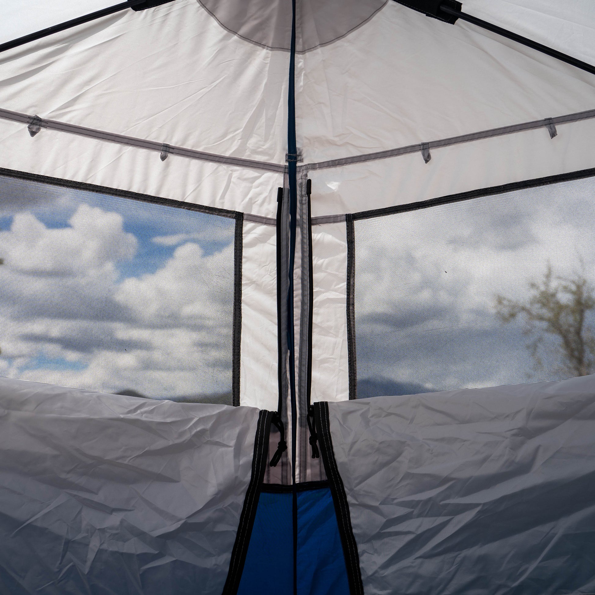 The spacious 76” x 82” interior provides room to sleep up to three people in sleeping bags and provides plenty of space for extra gear. Standing over 5’ tall at the center you are able to move around freely and not feel cramped.